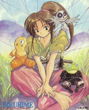 September 29, 19992000 Calendar NewsAnime calendars for 2000 are starting to be announced, so I went and checked out the Japanese Yanmaga web site. According to them, there will be no 3x3 Eyes calendar for next year! However, on Kodansha's online store, they do list a Genzo Hitogata Kiwa calendar (fifth row down on the left). It's a hanging scroll calendar (including a metallic holder), B2 size (360mm x 900mm), costing 3000 yen. The reservation deadline is October 5, so contact your favorite anime importer soon if you want one. Either GHK is replacing 3x3 Eyes as Takada-sensei's main series, or Kodansha is tired of reprinting the same old 3x3 Eyes artwork every year. However, all is not lost for 3x3 Eyes fans. As mentioned back in February, some 3x3 Eyes artwork is featured in the Dark Horse Manga 2000 Calendar. This calendar is apparently available in comic shops now, but I can't find any info on the Dark Horse web site. Pester your local shop owner if you want one; I plan to do the same. Manga Vol. 32 DateAccording to Kodansha's web site, 3x3 Eyes manga #32 will be available on October 22. Also, Genzo Hitogata Kiwa manga #2 will go on sale the same day. I also noticed that Kodansha is selling computer wallpaper on their site, including two 3x3 Eyes pictures. I personally wouldn't pay 300 yen for a few JPG images, though. Genzo, Genzo, GenzoA calendar, a new manga volume... what's next? That would be the Genzo Hitogata Kiwa telephone card and pin set, available in Japan this month. I don't know if this can be found for sale online or not. As mentioned above, Takada-sensei hasn't been doing too much 3x3 Eyes color artwork recently, but he has created some nice full-color GHK artwork. Check out this Kikuhime mini-poster (27,399 bytes) from Afternoon magazine. You can grab the actual-size version (314,452 bytes) and make your own poster. I'm working on gathering up some more info on GHK, which should make it online eventually... |